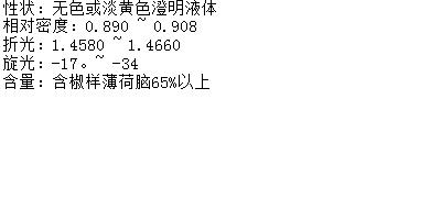 化学成分: 薄荷脑、薄荷酮、柠檬烯、薄荷